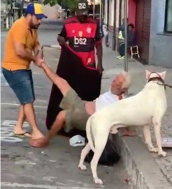 Homem com pitbull agride idoso na porta de banco em Teófilo Otoni