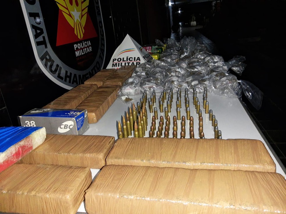 Veículo foi abordado em Teófilo Otoni após denúncia. Foram apreendidas 15 barras e quase mil buchas de maconha, 2 barras de pasta base de cocaína e cerca de 100 munições de calibres variados.