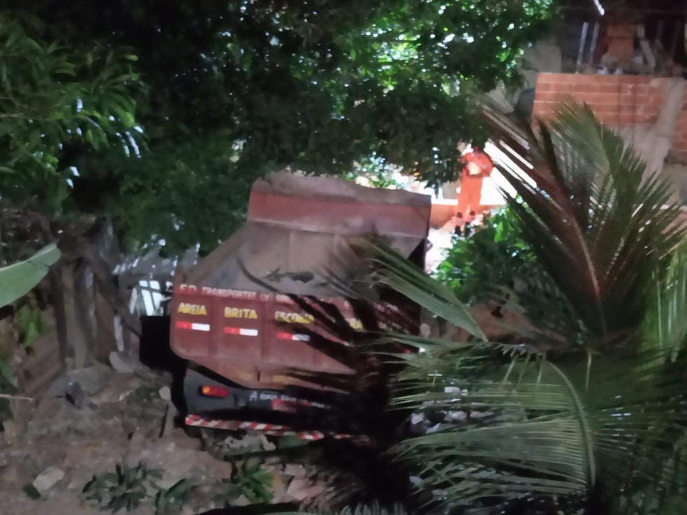 Caminhão perde freio, bate em outros dois e para no quintal de uma casa em Timóteo