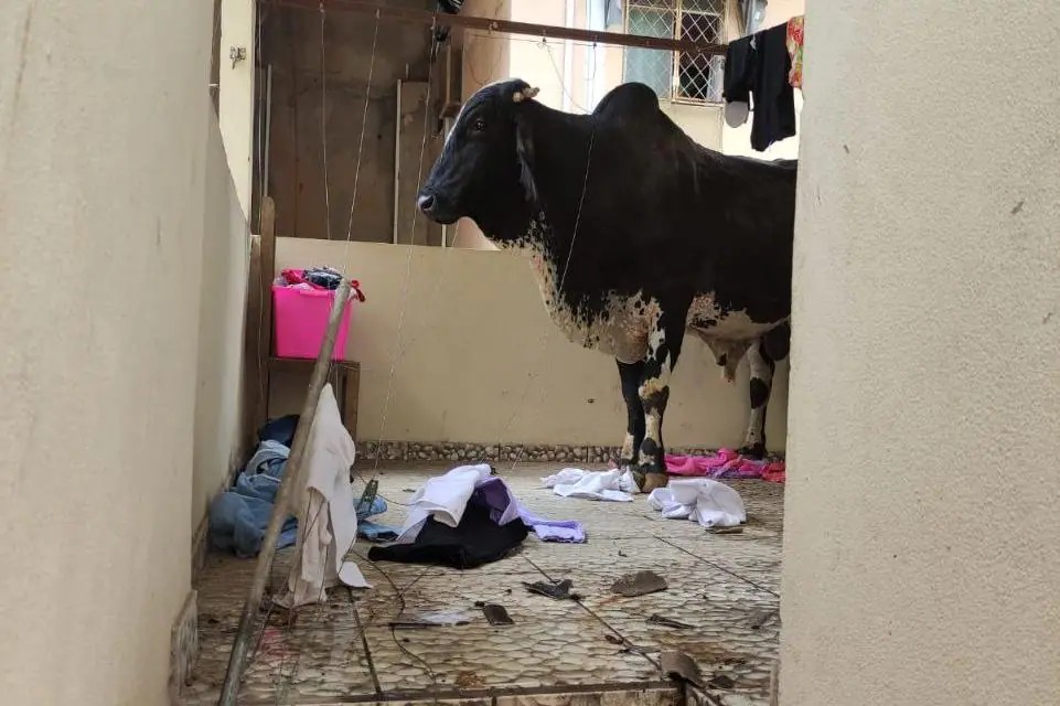 Boi é resgatado após cair em terraço de casa em Timóteo