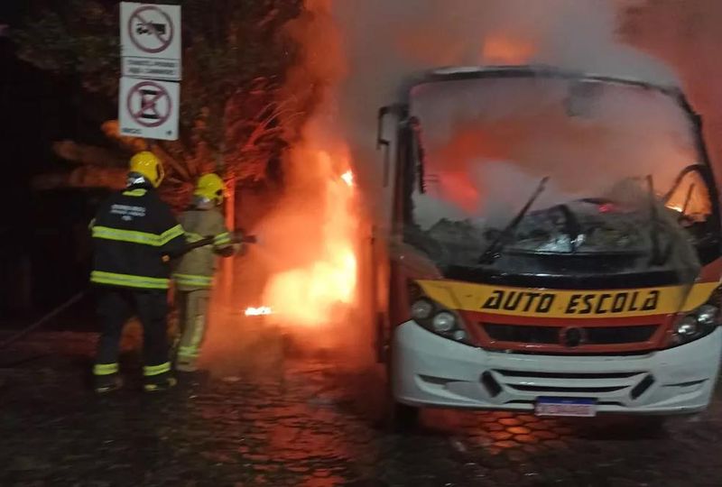 Bandidos atiram contra Auto Escola e colocam fogo em ônibus da empresa em Timóteo (MG)