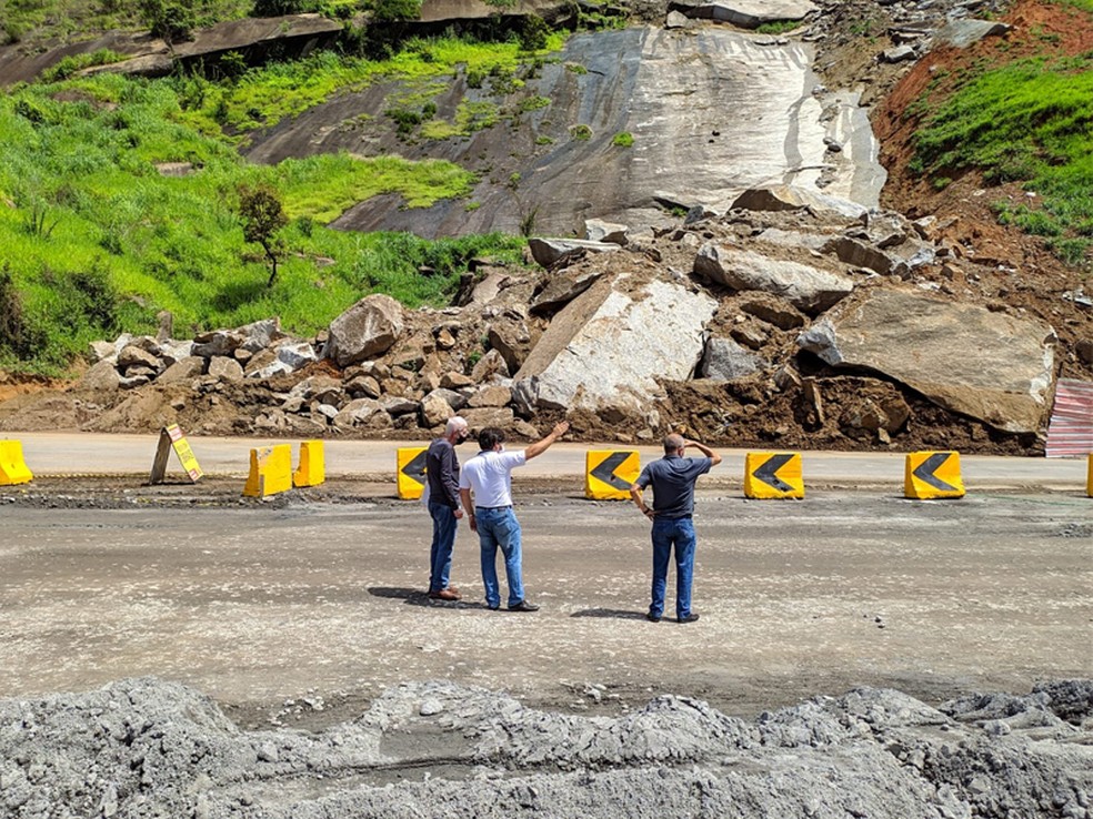 Uma empresa responsável implodiu partes de uma rocha que obstruía a via e retirou os fragmentos.