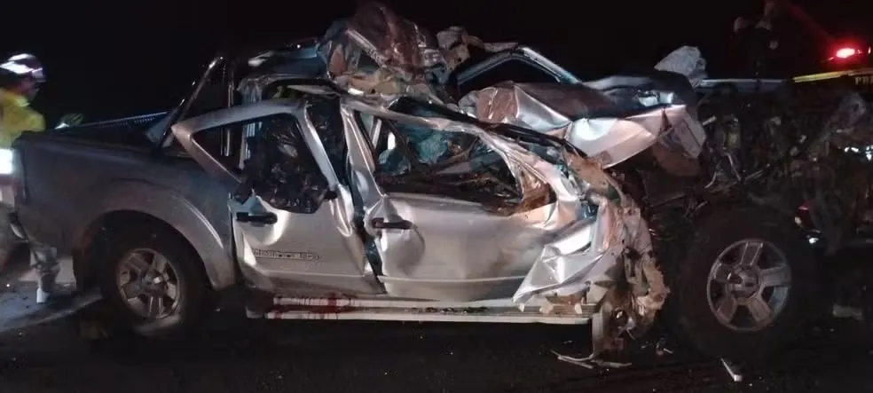 Caminhonete bate na traseira de carreta e três pessoas morrem e outras duas ficam feridas na BR-365