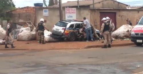 Policiais ficam feridos após criminosos roubarem carro e jogarem veículo contra viatura em Uberlândia