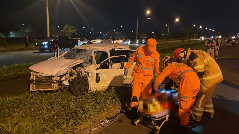 Jovem fica gravemente ferido após batida de frente com carro que fugia da PM em Uberlândia