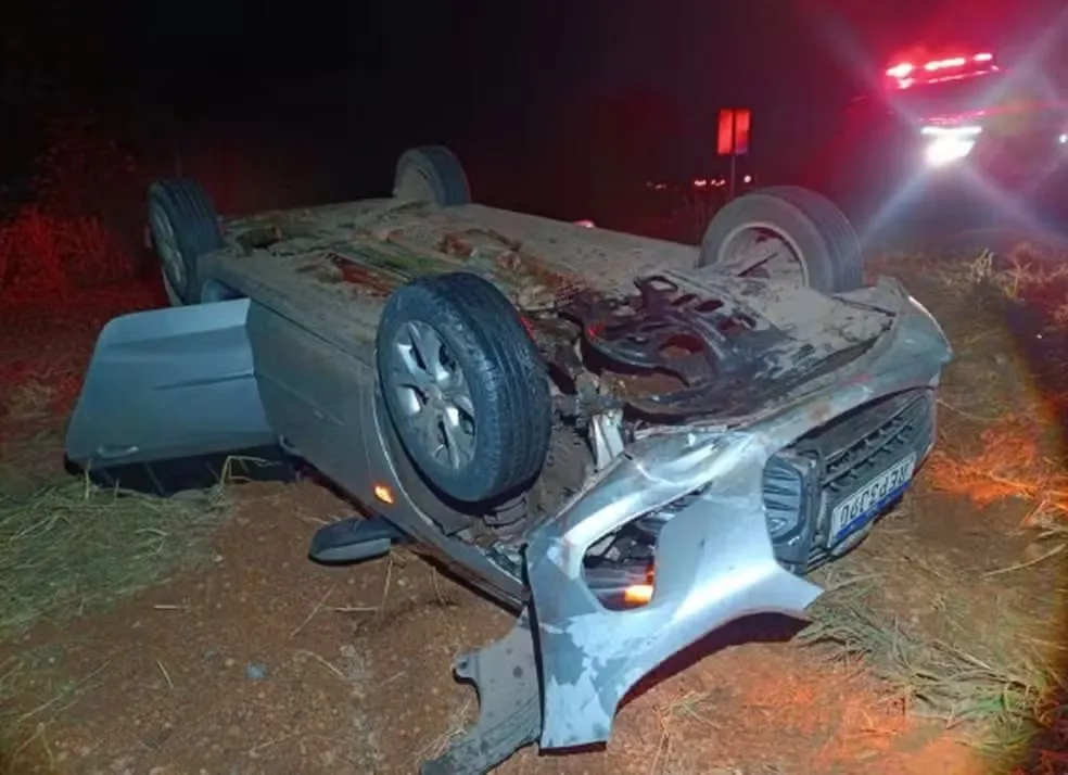 Carro capota depois de passar por cima de anta atropelada na BR-251 em Unaí